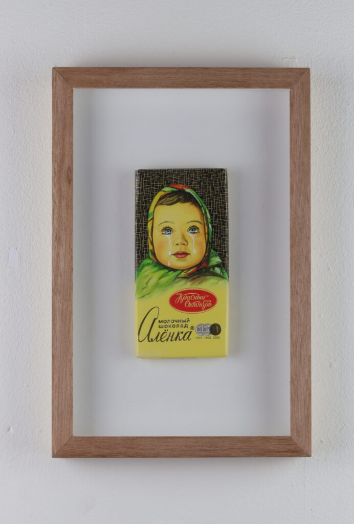 ‘Alenka’ chocolate bar; added tears in acrylic paint